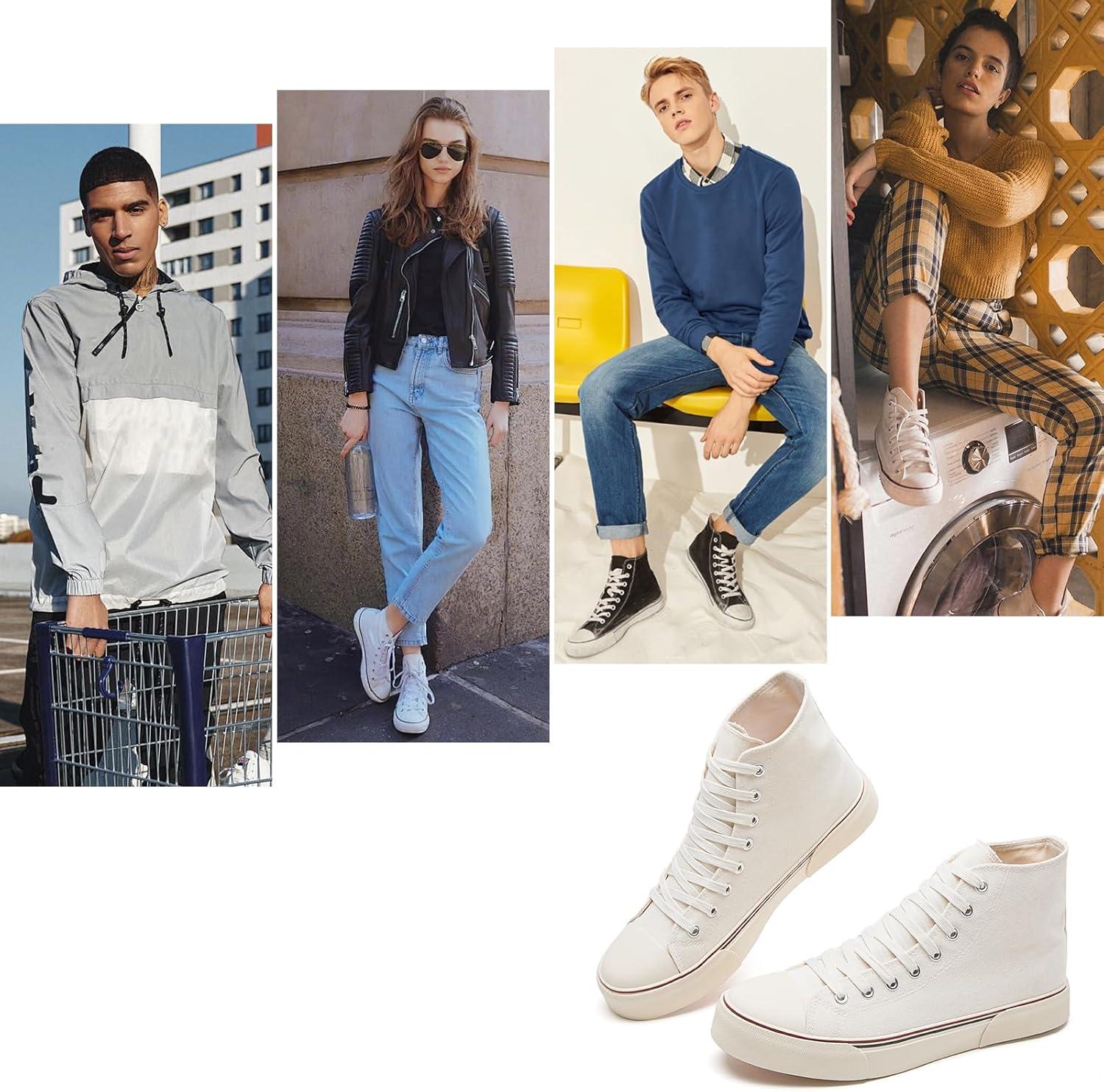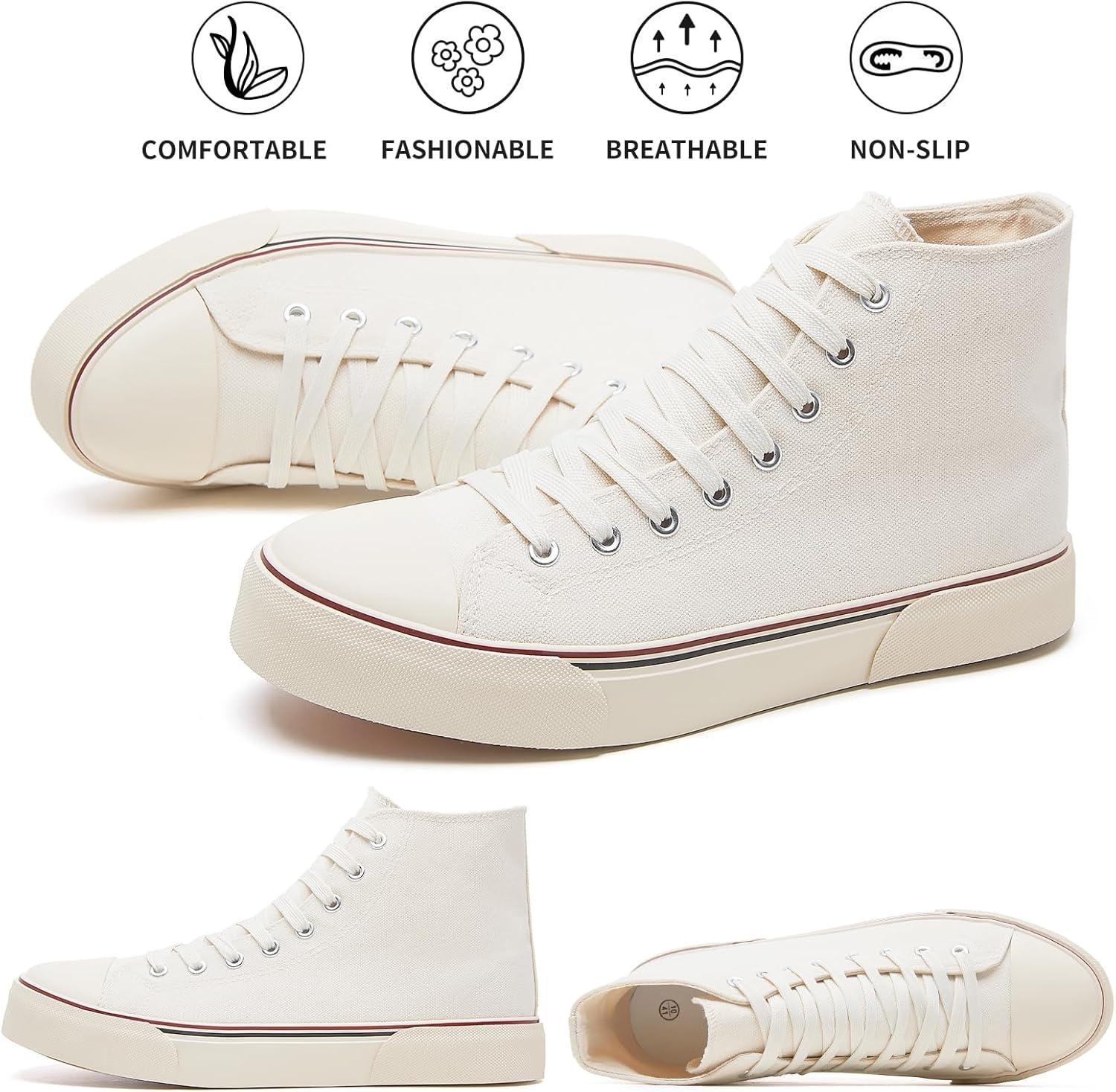 hash bubbie High Top Sneakers for Women Classic High Tops Canvas Shoes Lace up Women’s Fashion Sneaker(White)