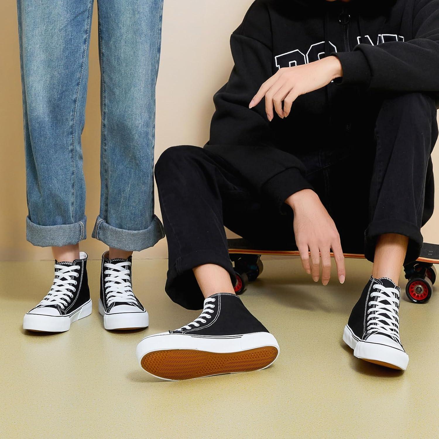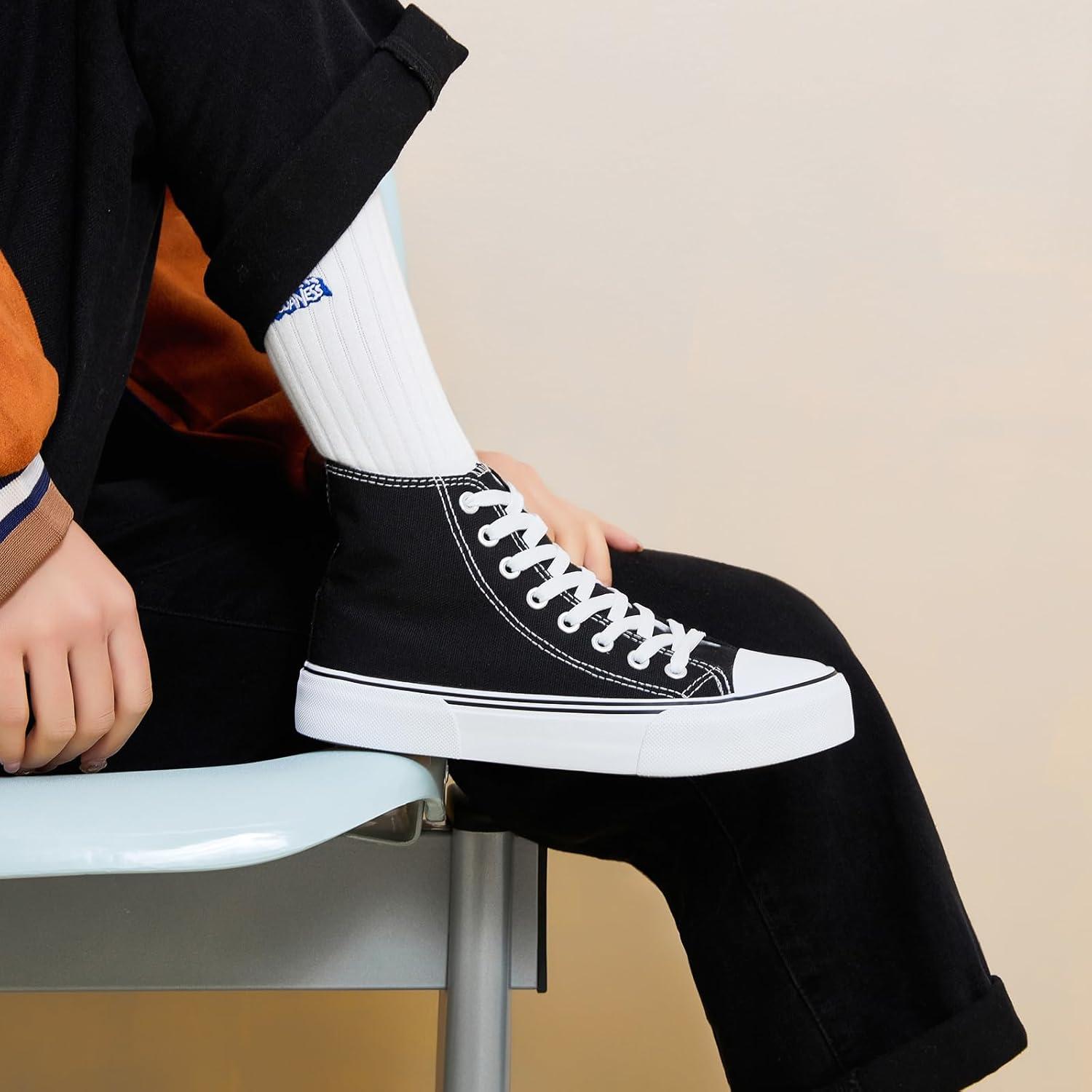 hash bubbie High Top Sneakers for Women Classic High Tops Canvas Shoes Lace up Women’s Fashion Sneaker(Black)