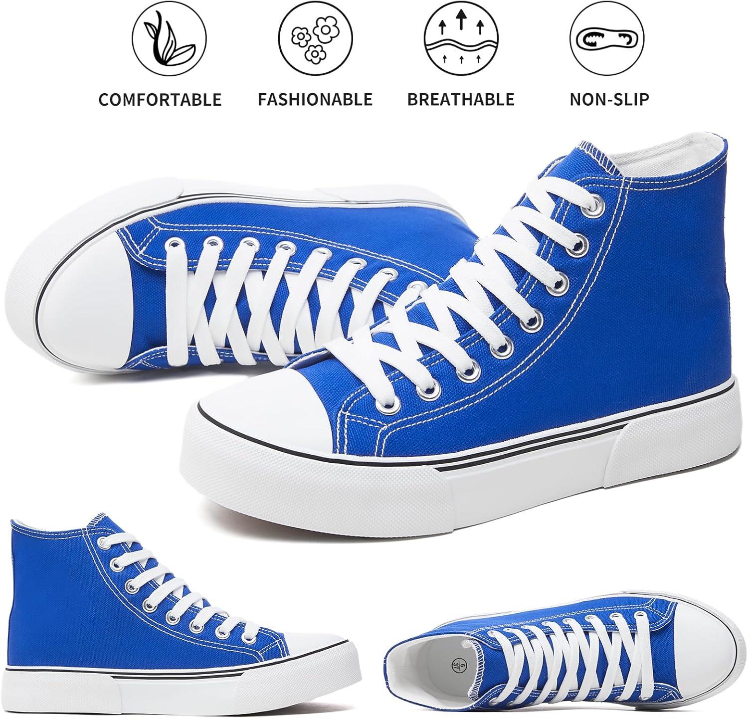 hash bubbie High Top Sneakers for Women Classic High Tops Canvas Shoes Lace up Women’s Fashion Sneaker(Dark Blue)