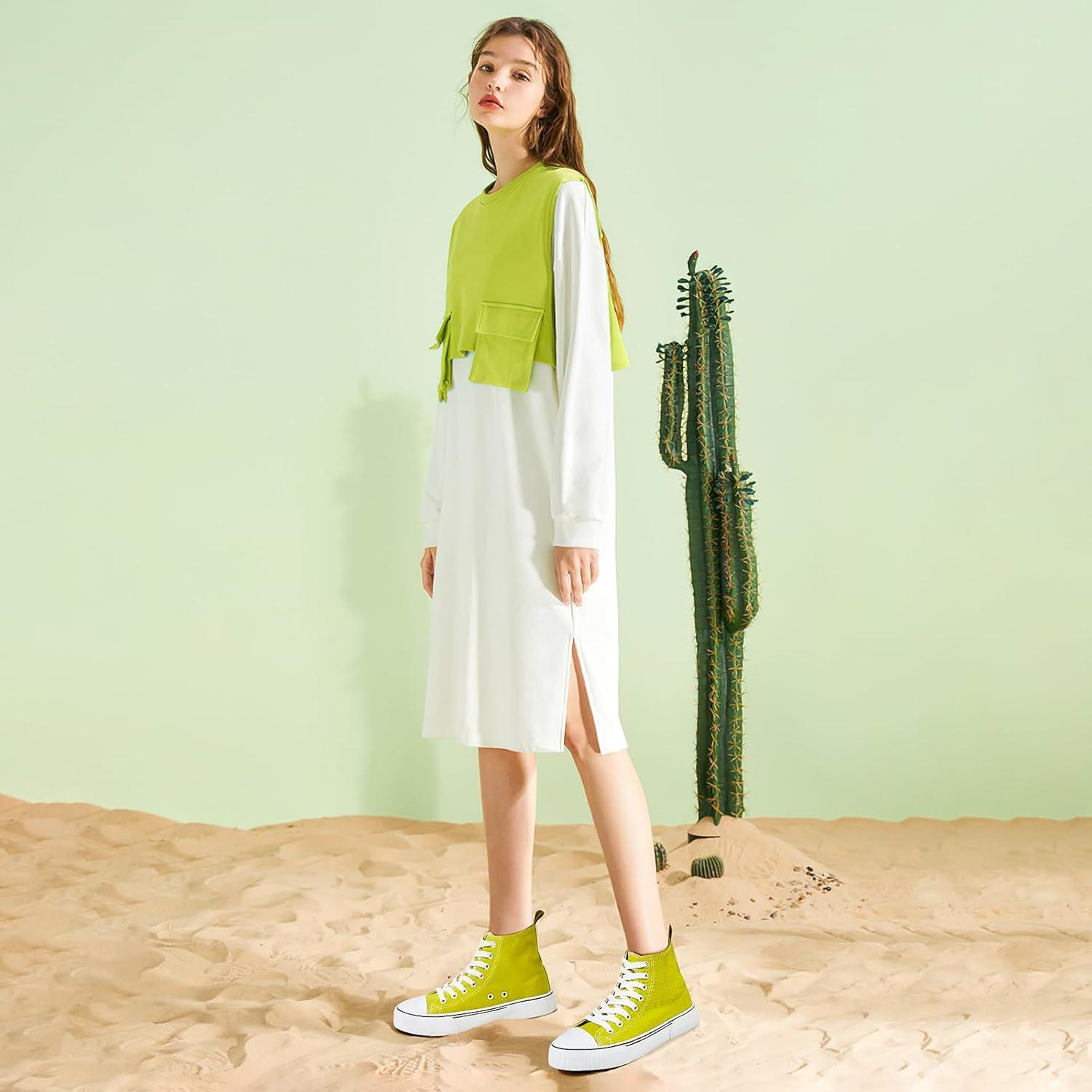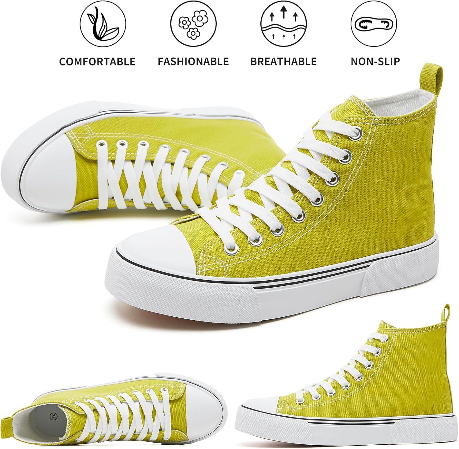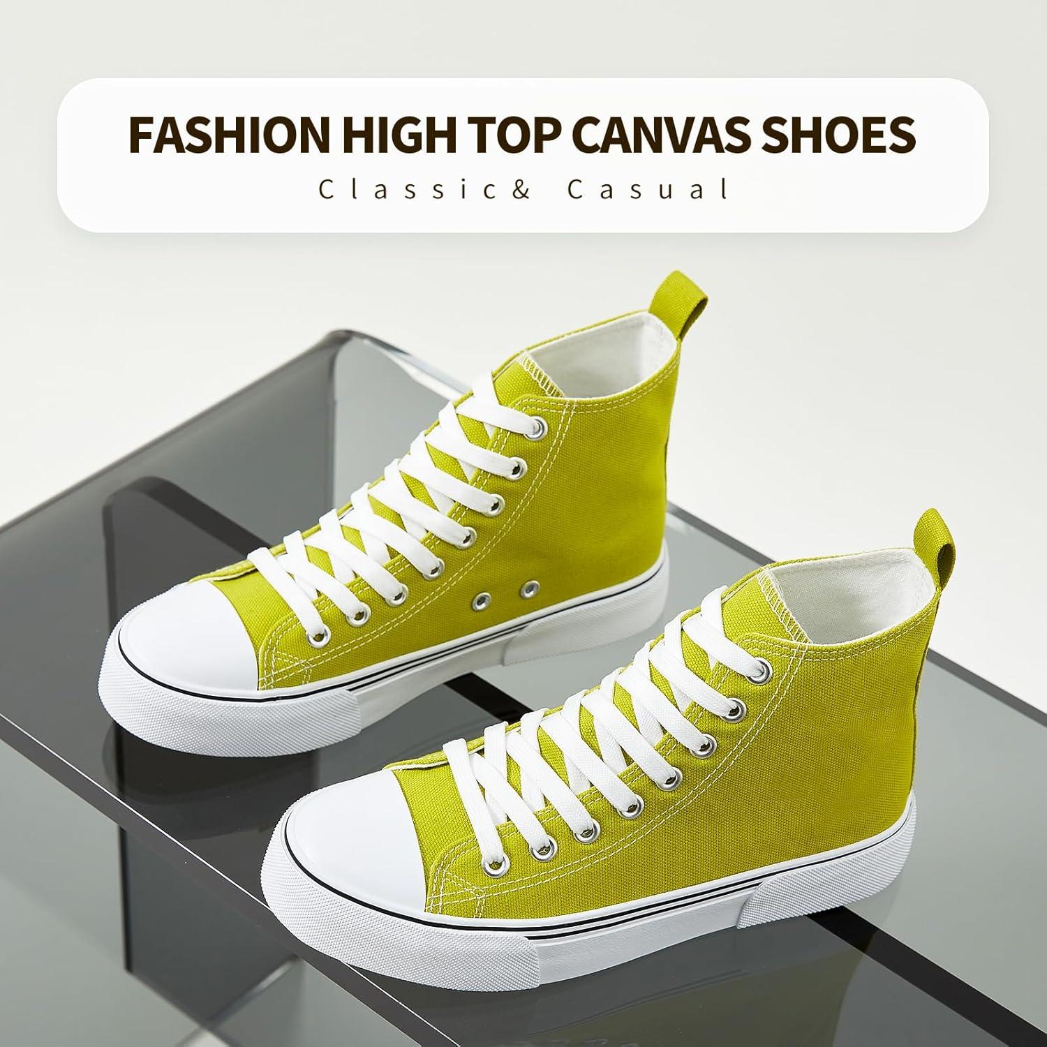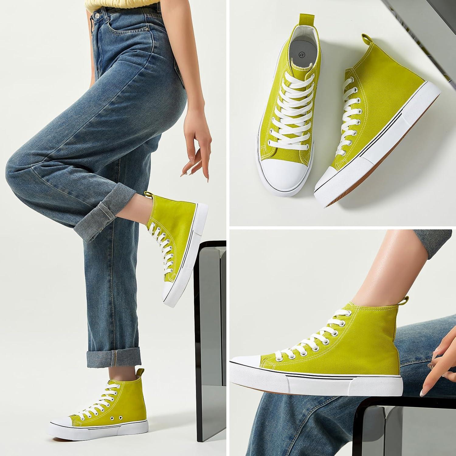 hash bubbie High Top Sneakers for Women Classic High Tops Canvas Shoes Lace up Women’s Fashion Sneaker(Fluorescent Green)