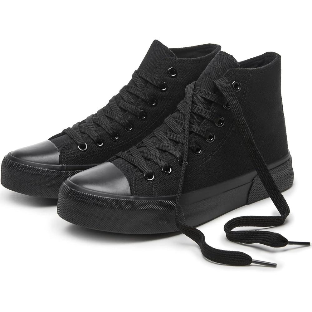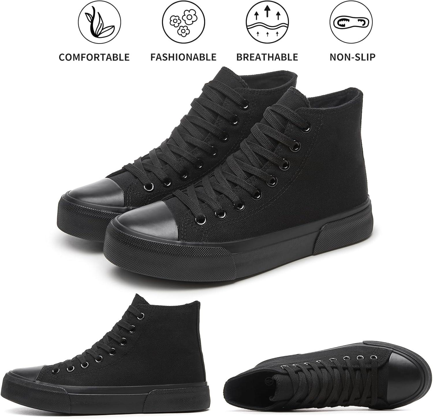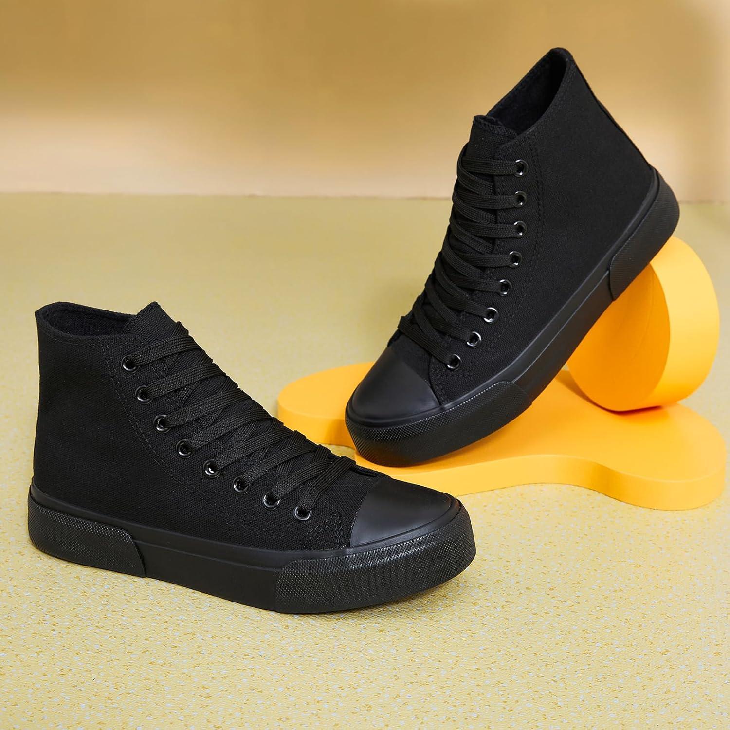 hash bubbie High Top Sneakers for Women Classic High Tops Canvas Shoes Lace up Women’s Fashion Sneaker(Full Black)