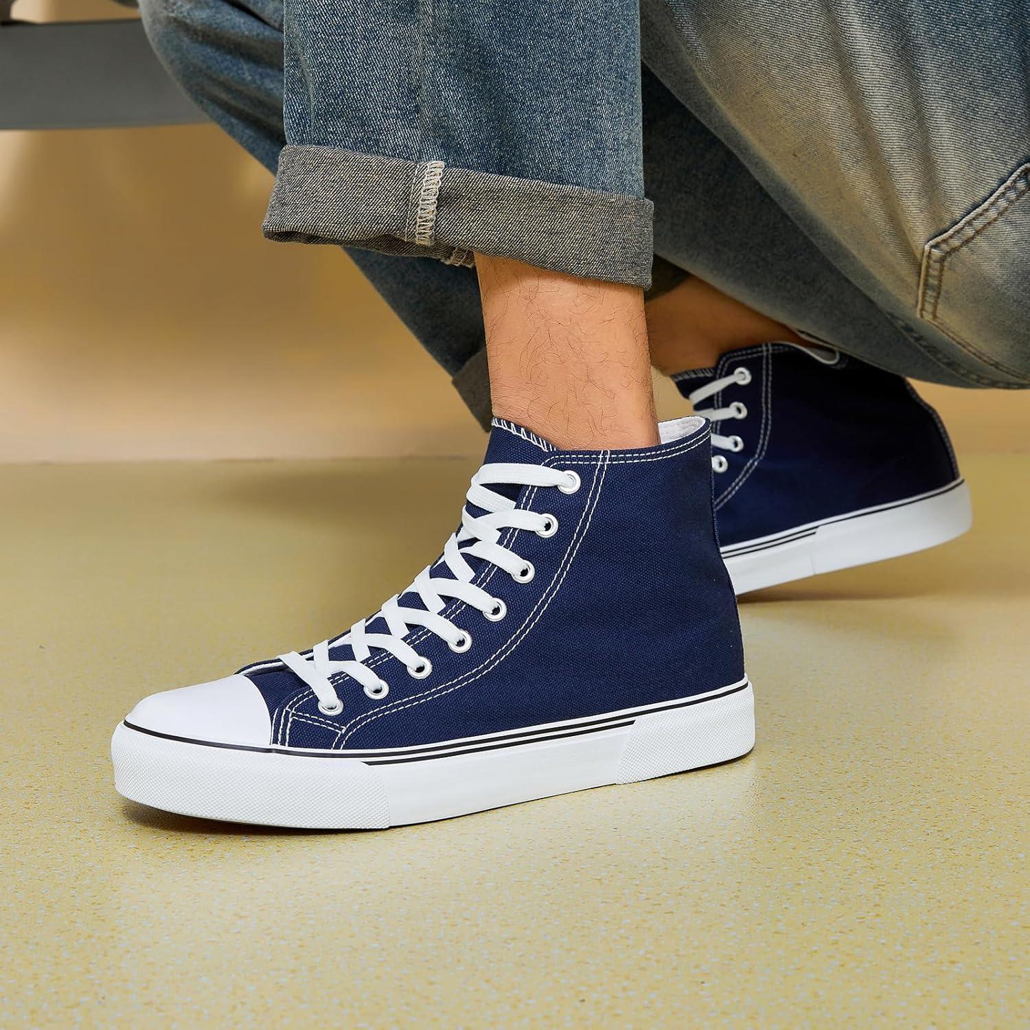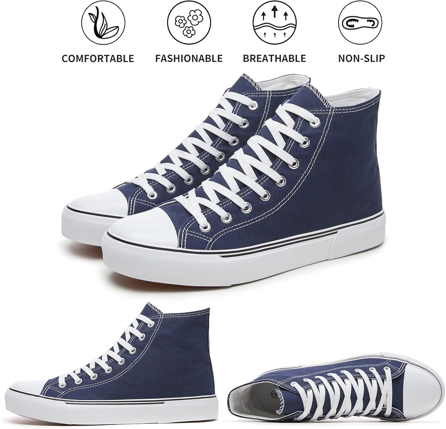 hash bubbie High Top Sneakers for Women Classic High Tops Canvas Shoes Lace up Women’s Fashion Sneaker(Navy)