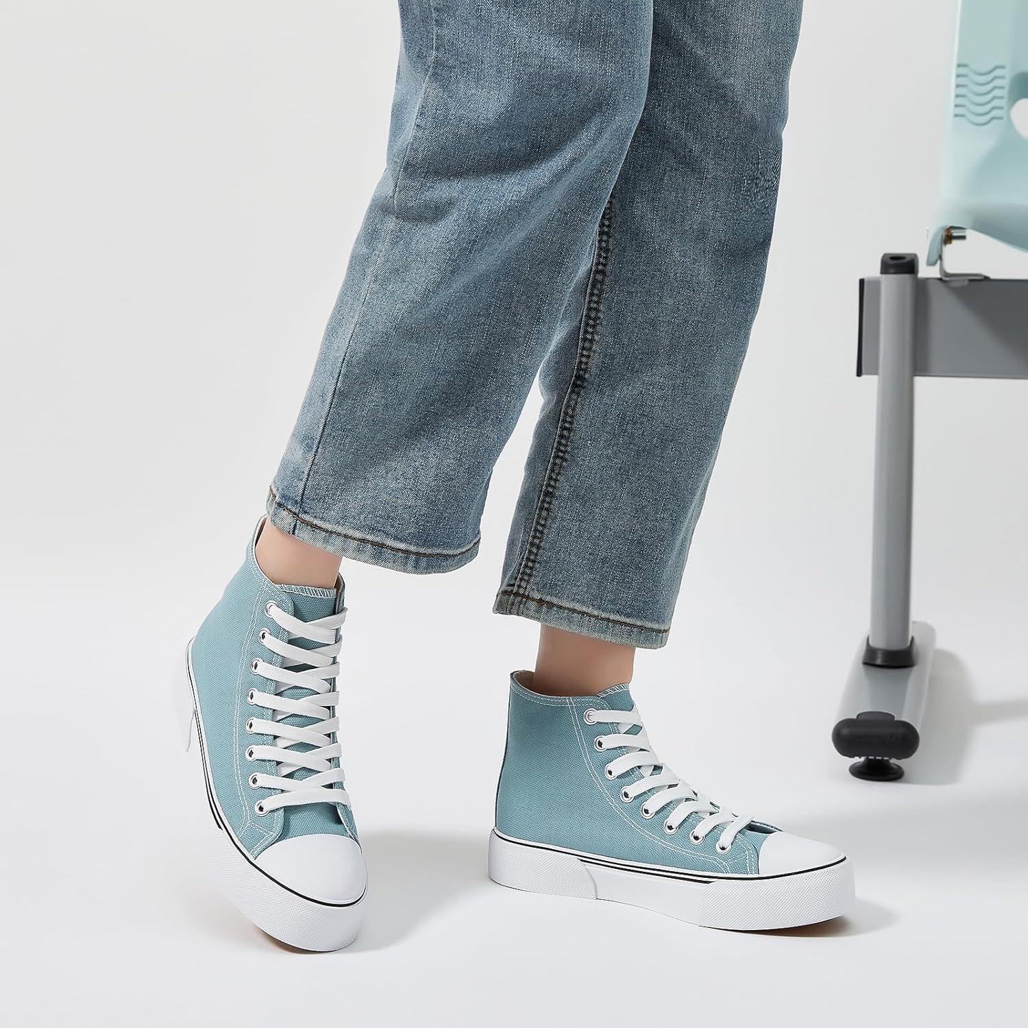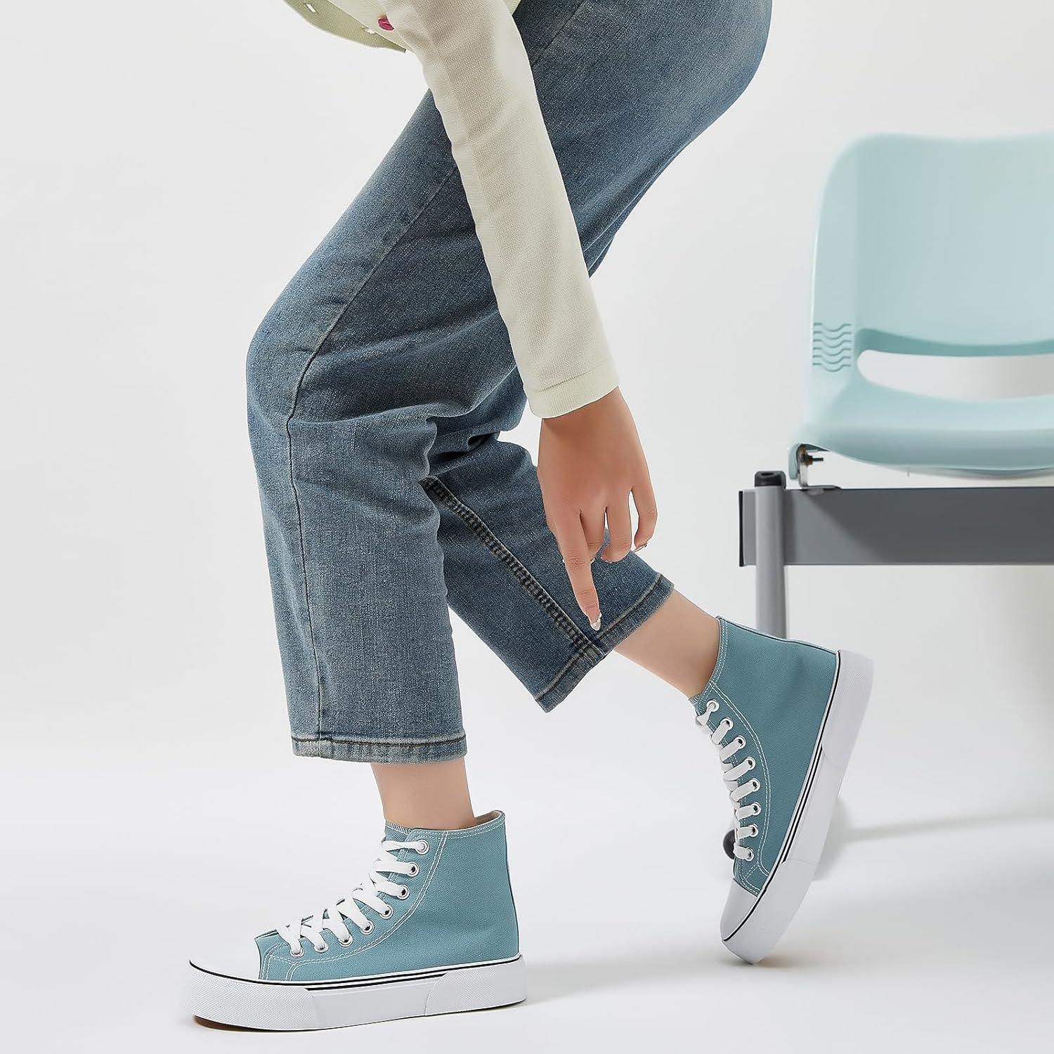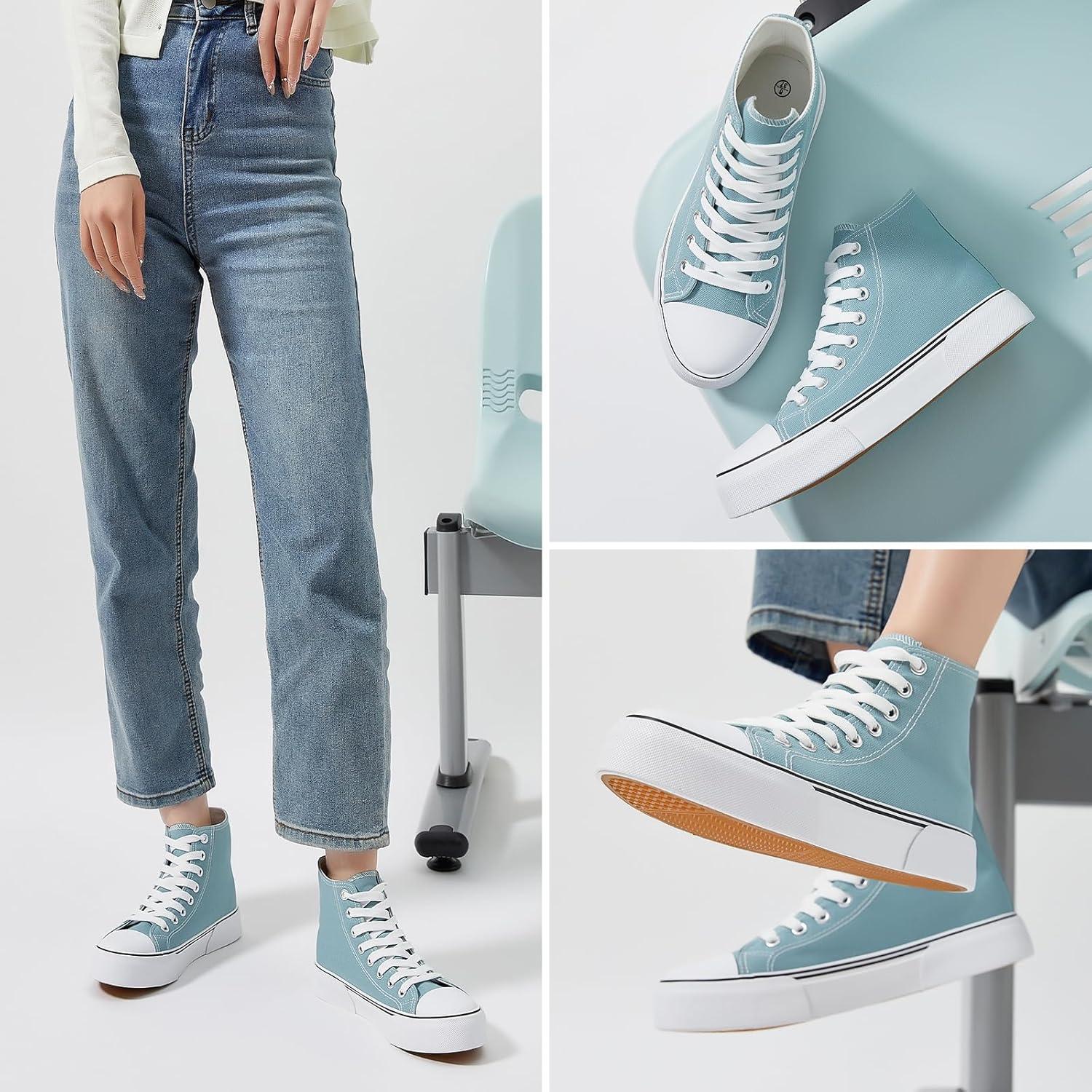 hash bubbie High Top Sneakers for Women Classic High Tops Canvas Shoes Lace up Women’s Fashion Sneaker(Turquoise)