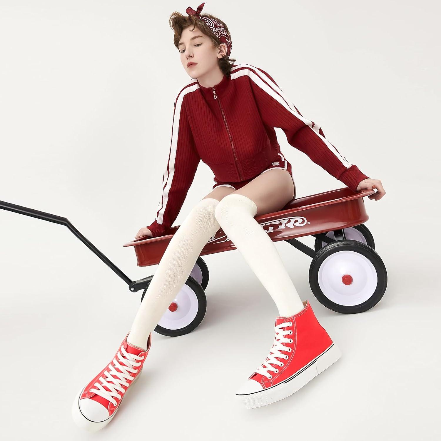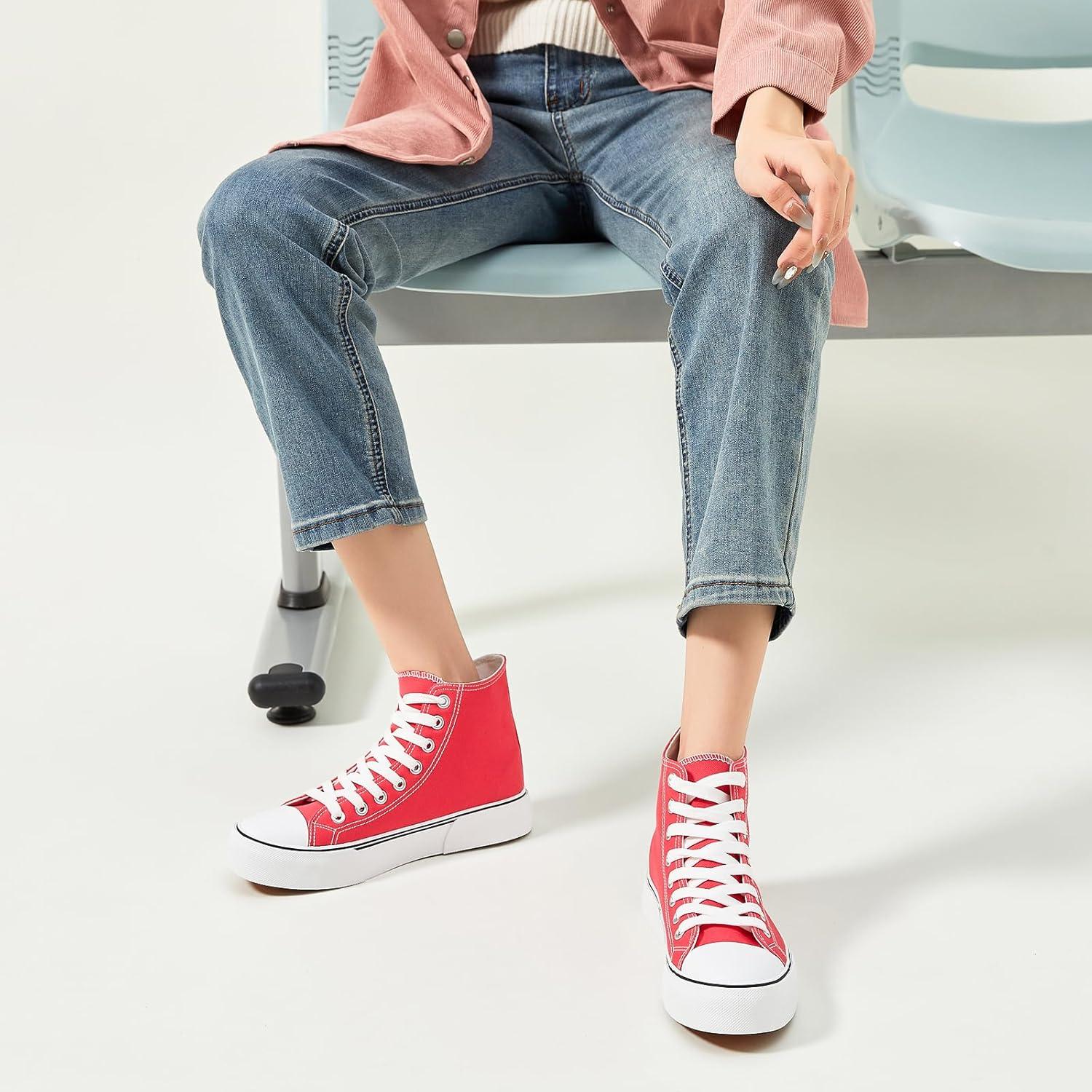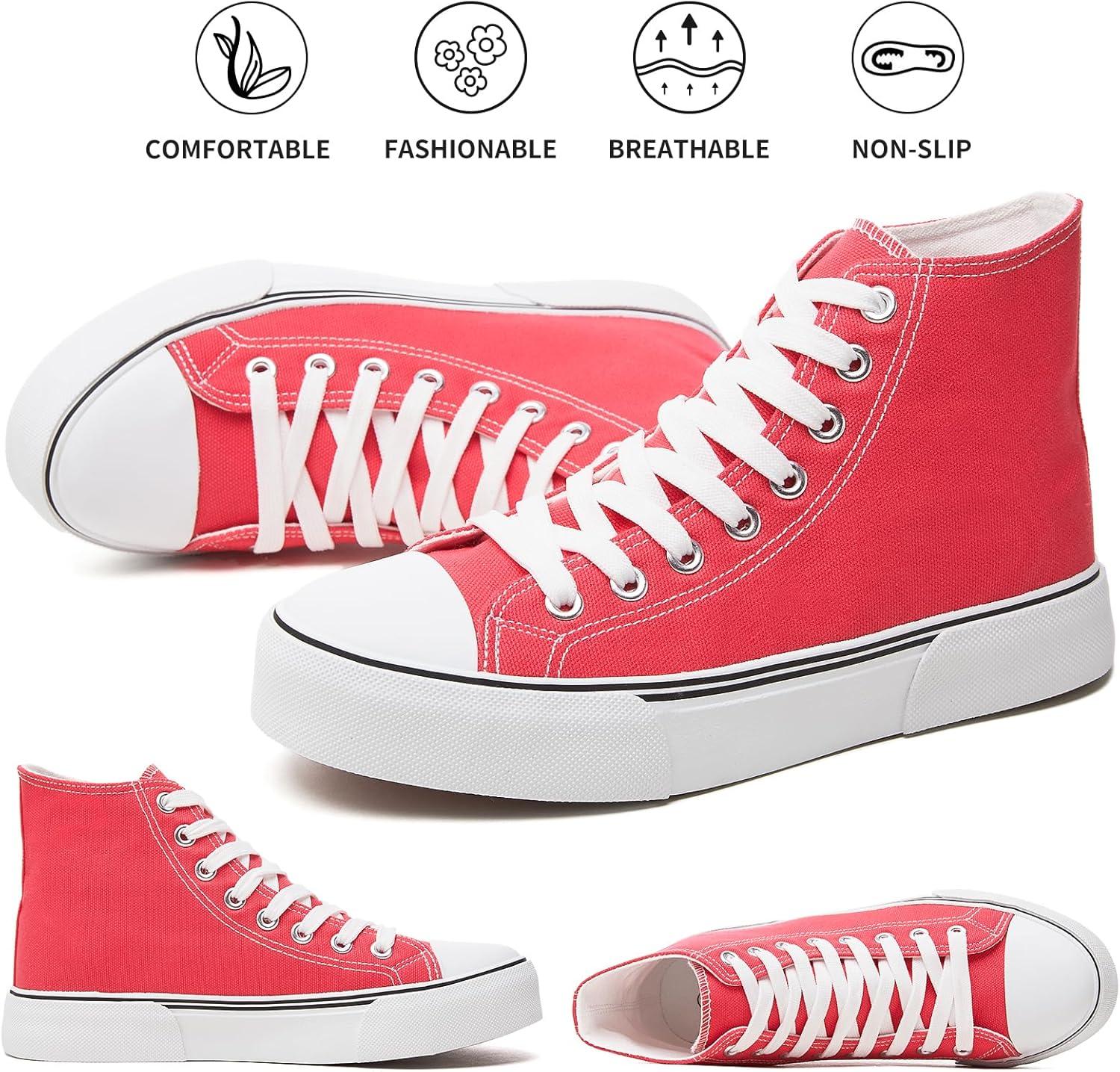 hash bubbie High Top Sneakers for Women Classic High Tops Canvas Shoes Lace up Women’s Fashion Sneaker(Watermelon Red)