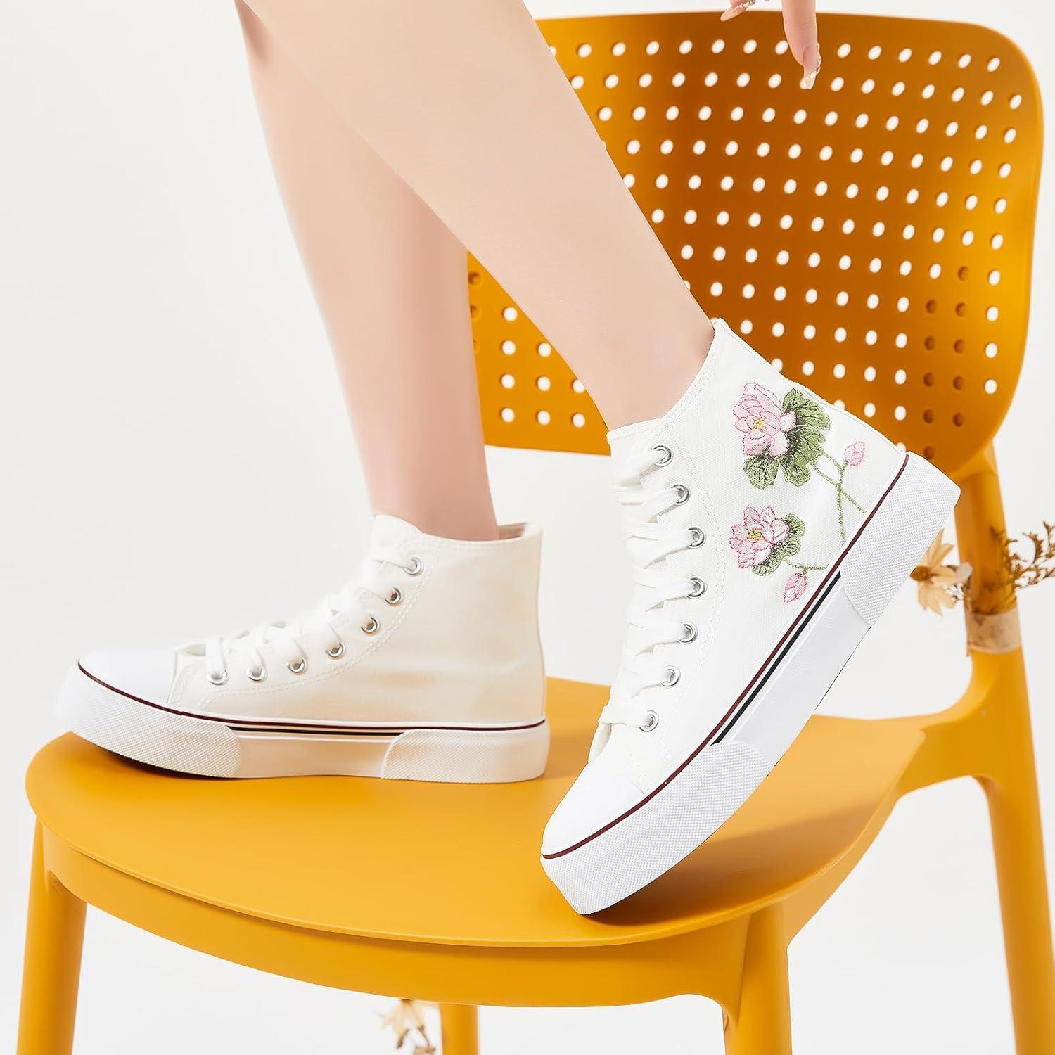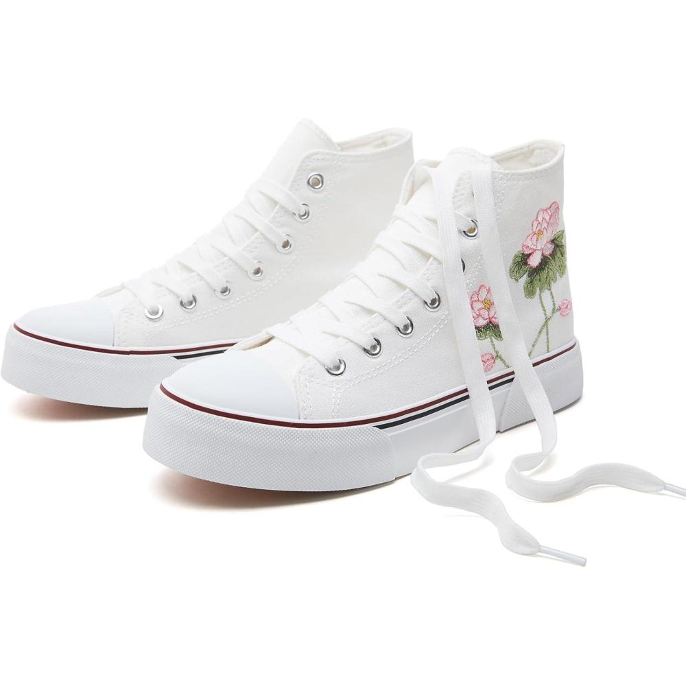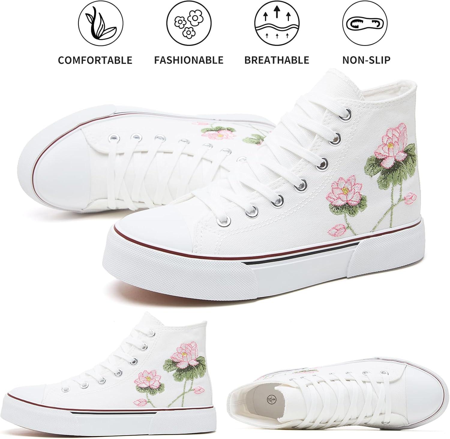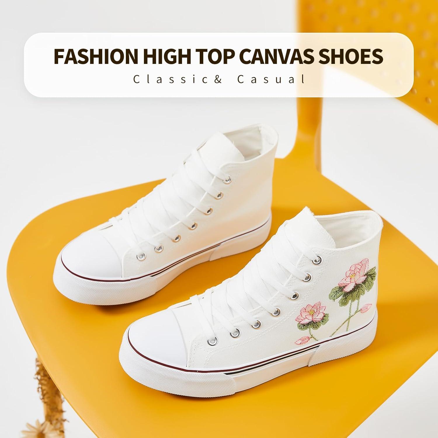 hash bubbie High Top Sneakers for Women Classic High Tops Canvas Shoes Lace up Women’s Fashion Sneaker(White Lotus)