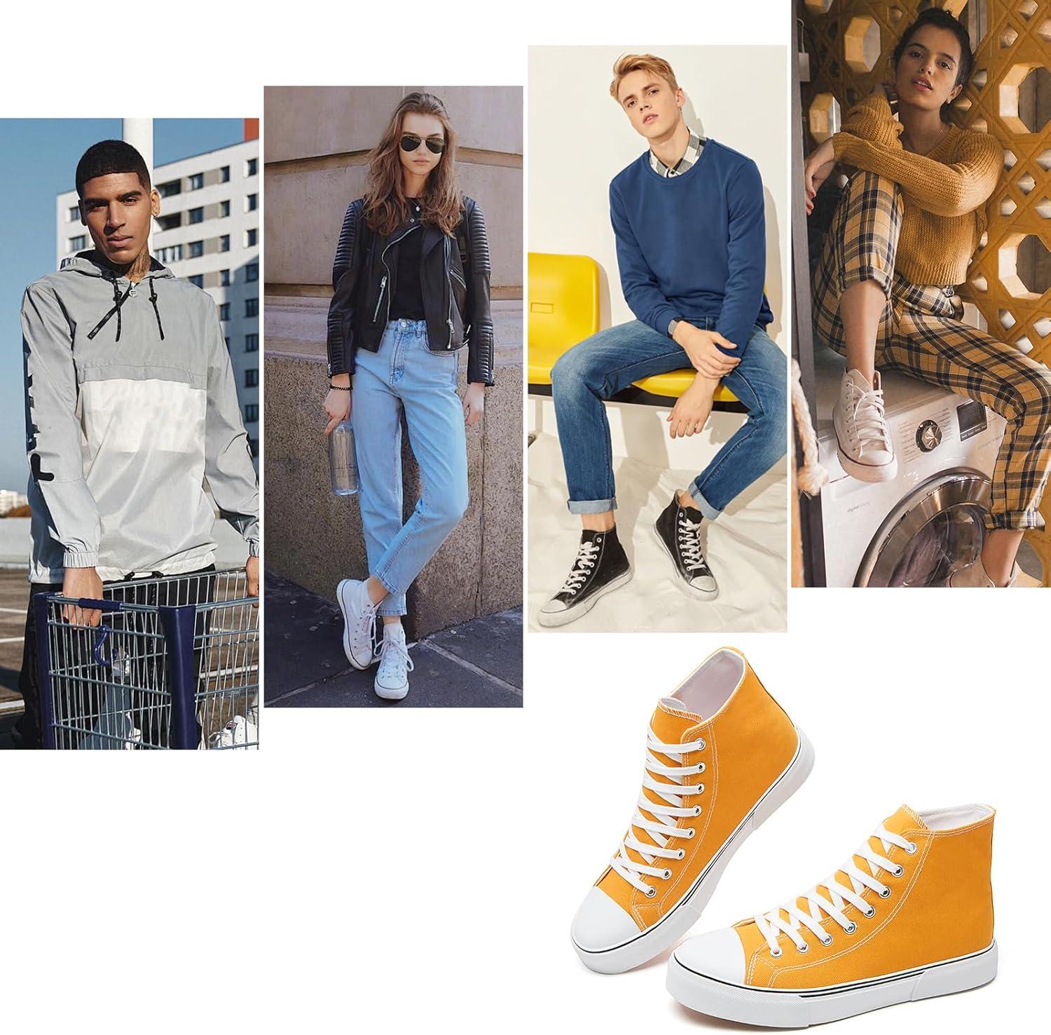 hash bubbie High Top Sneakers for Women Classic High Tops Canvas Shoes Lace up Women’s Fashion Sneaker(Yellow)