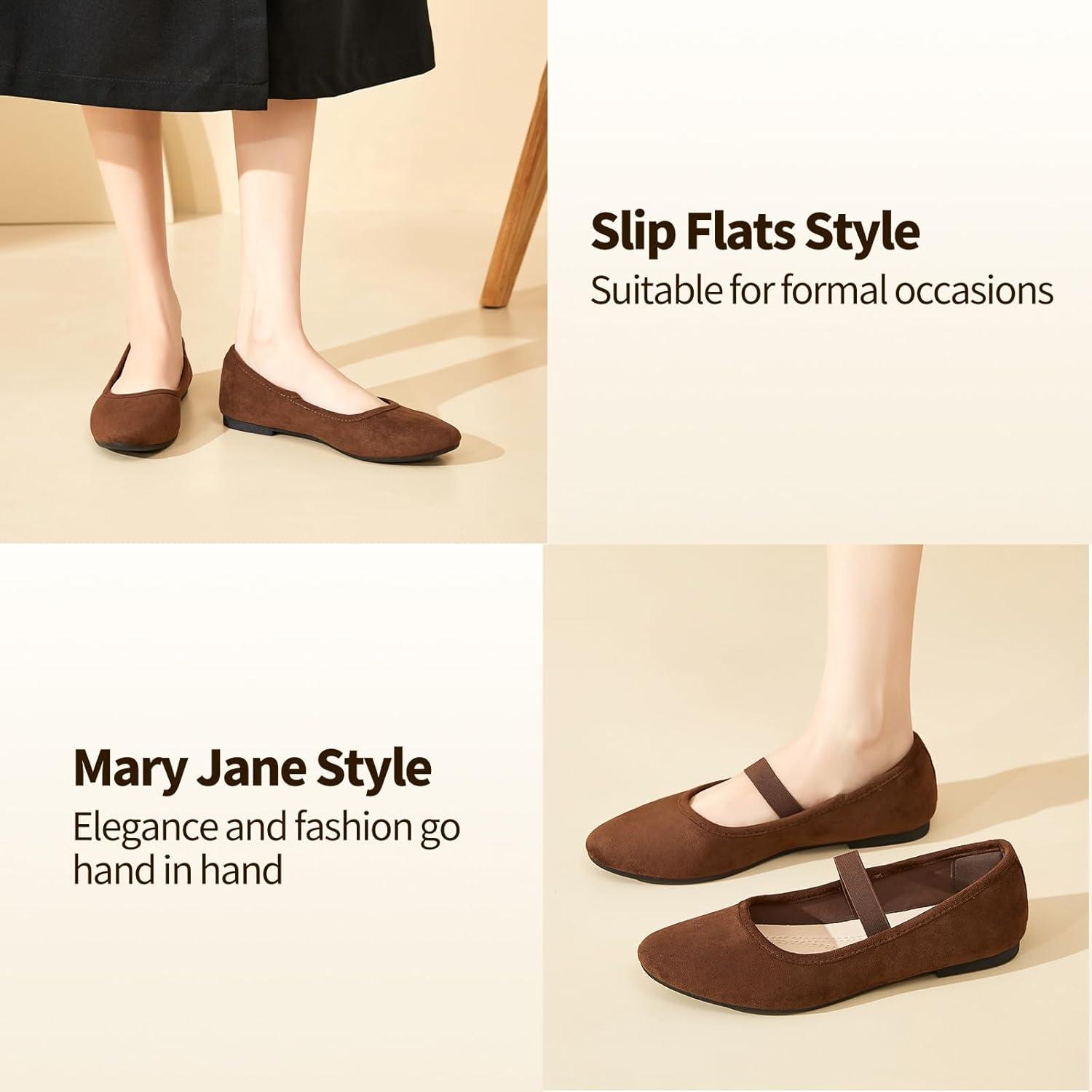 hash bubbie Women’s Black Flats Shoes Suede Mary Janes Ballet Flats Memory Foam Comfortable Dress Shoes(Tan)