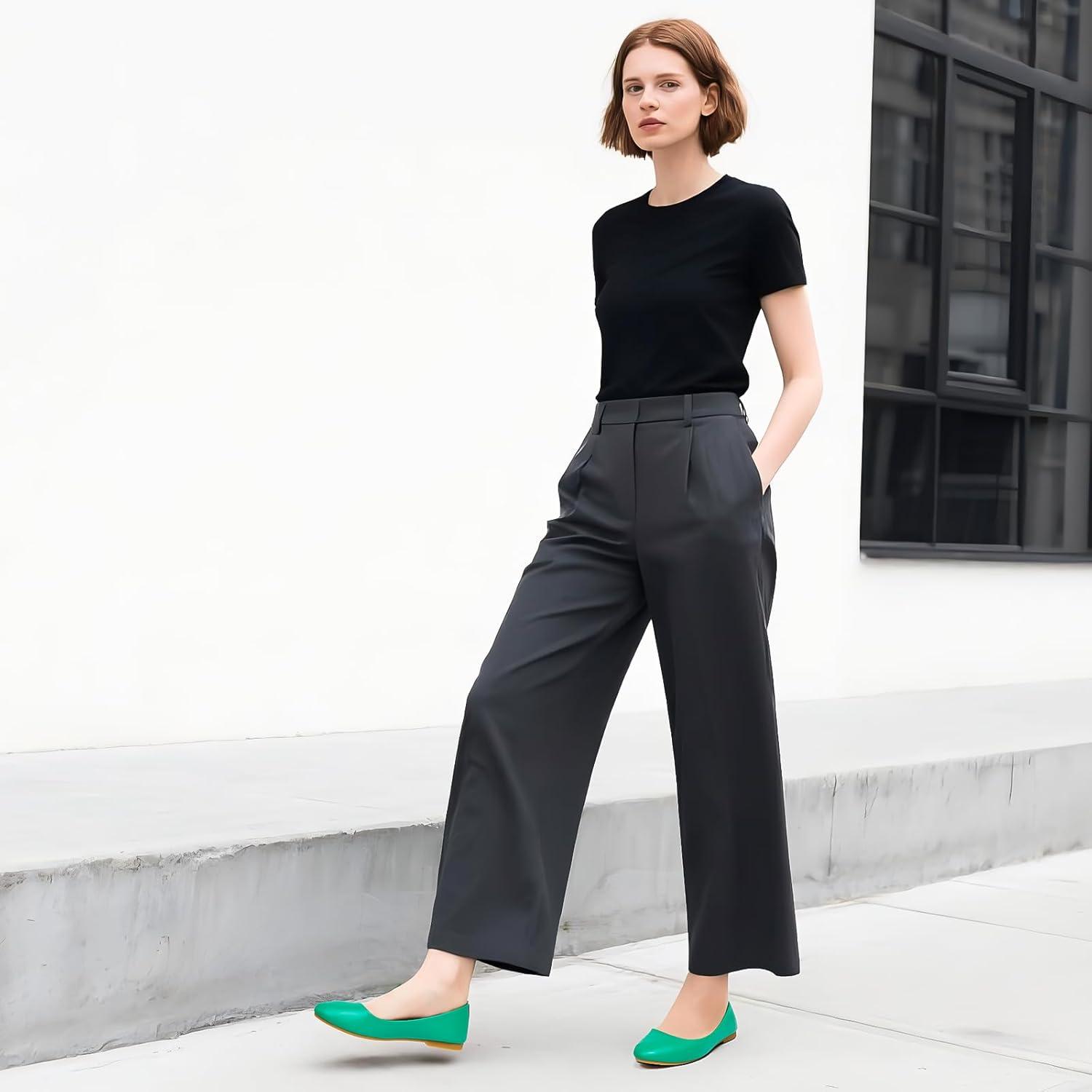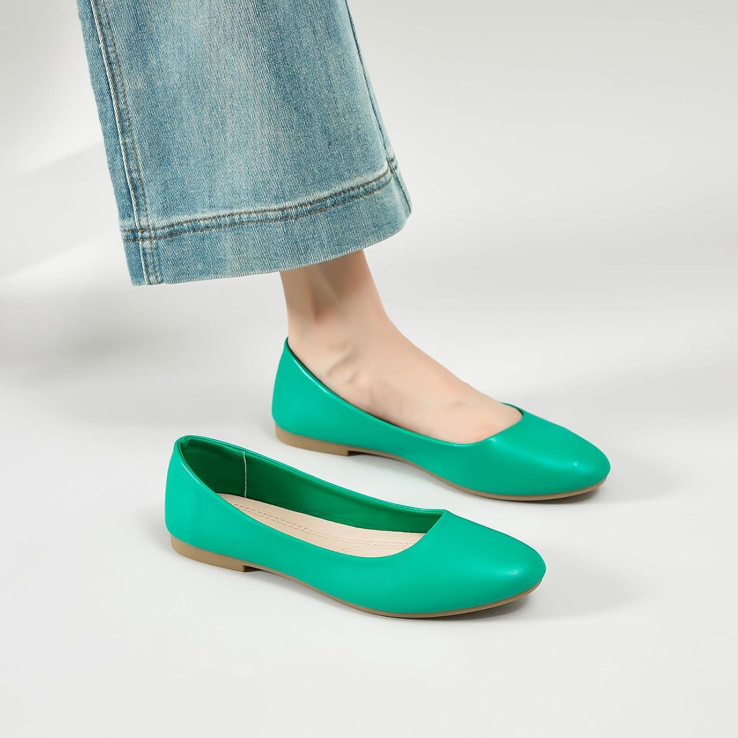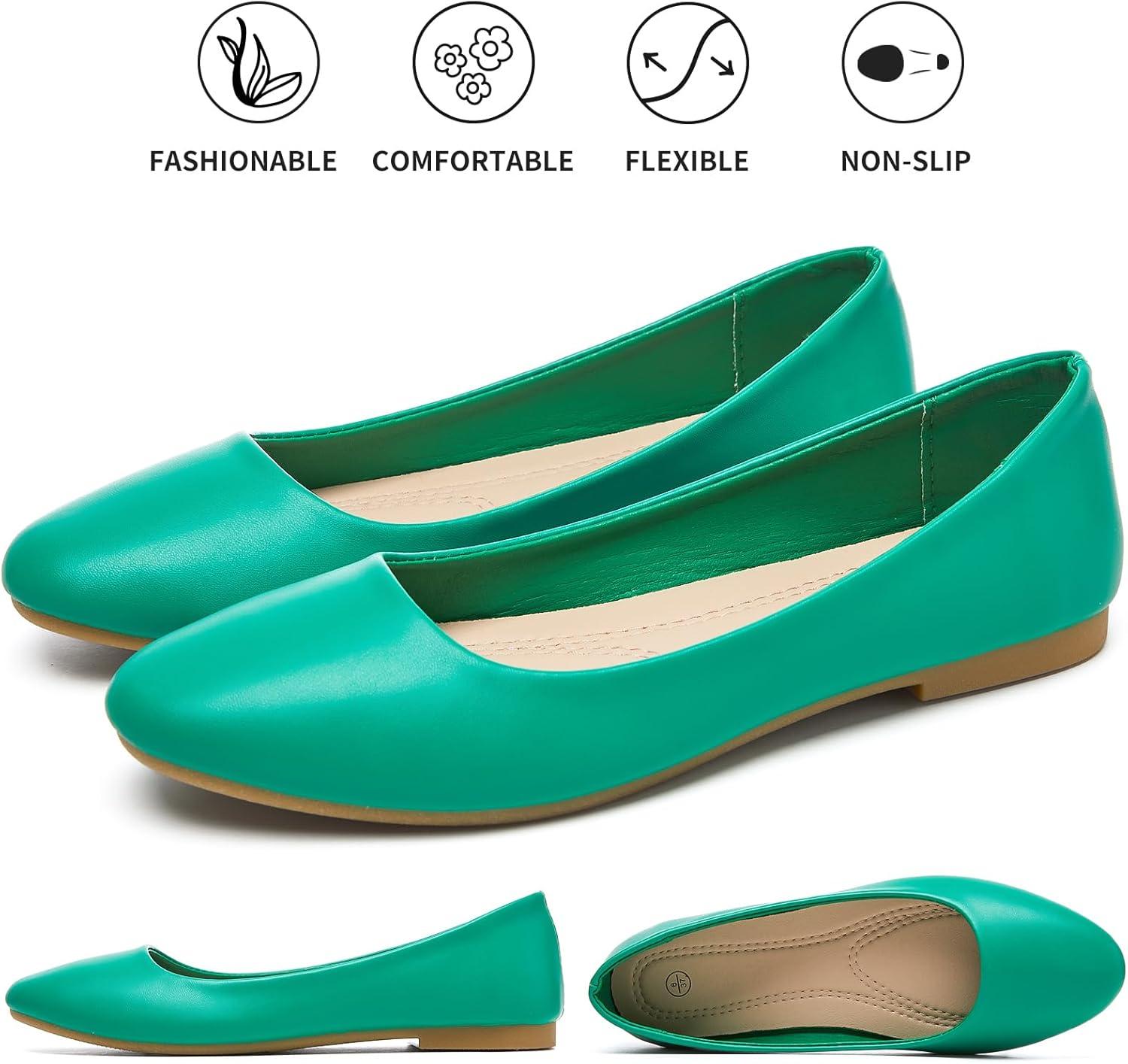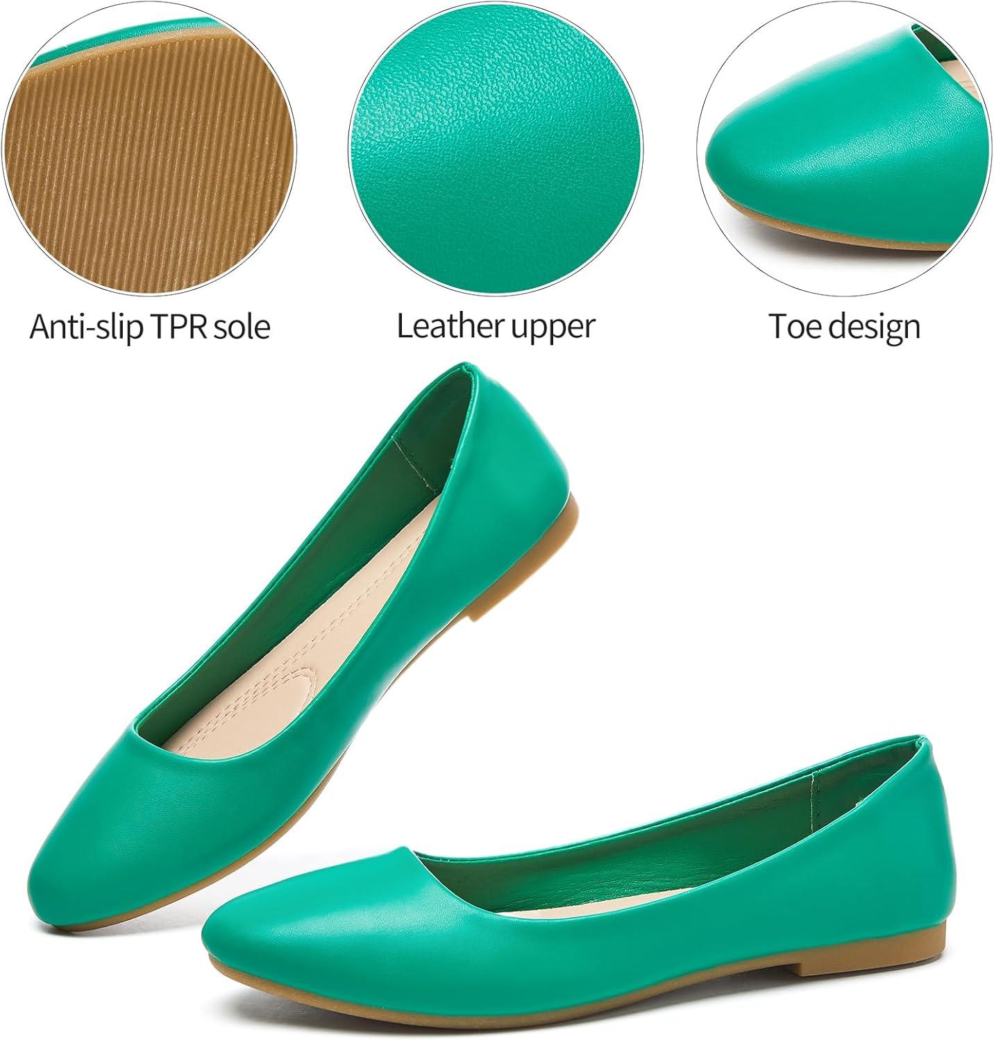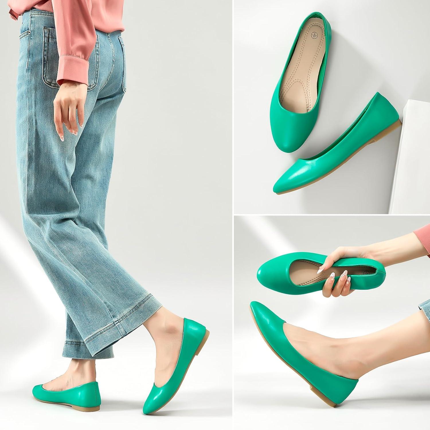 Hash Bubbie Women’s Flats Shoes Ballet Flats Dress Shoes Comfortable PU Leather Slip on Shoes for Women(Green)