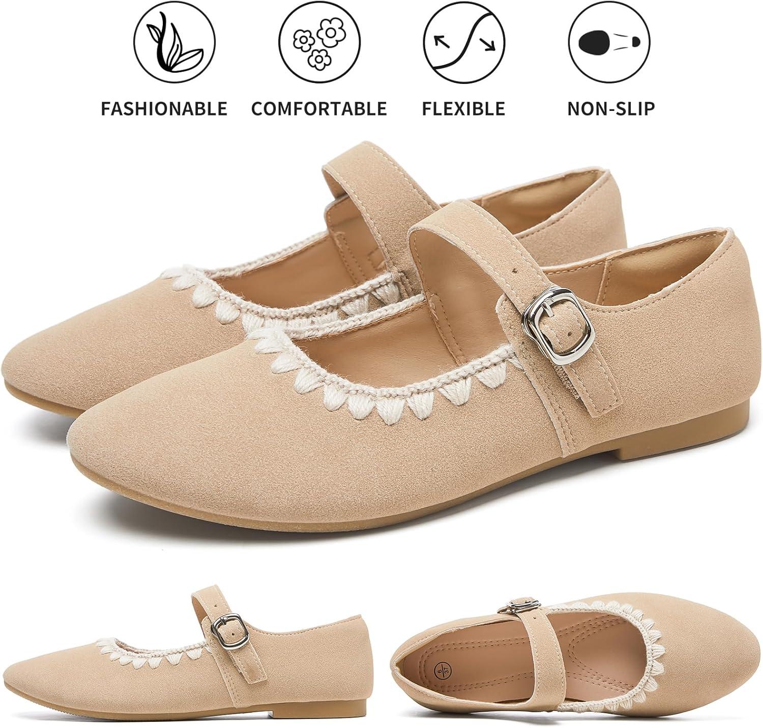 hash bubbie Women’s Mary Janes Flats Shoes Black Ballet Flats Memory Foam Dress Shoes with Strap(Khaki)