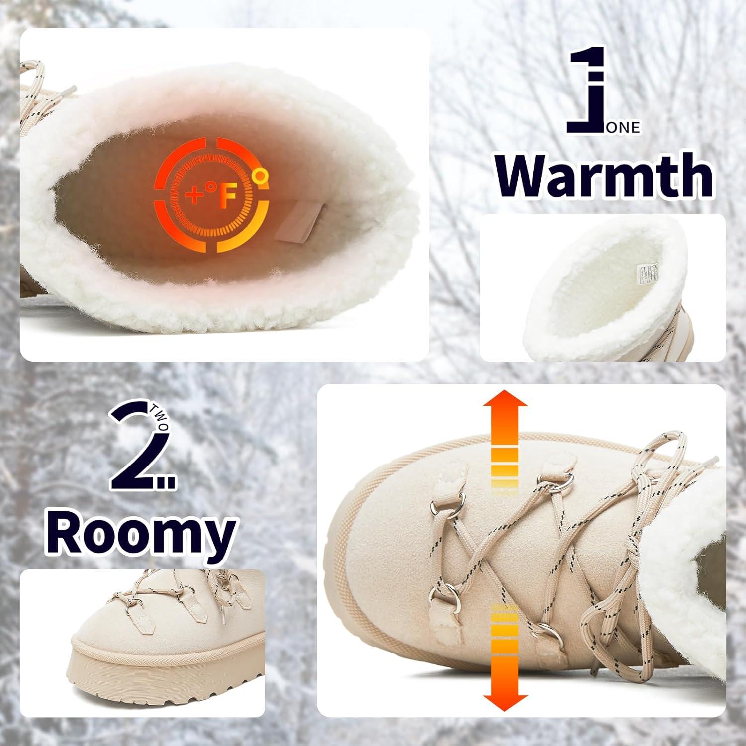 Don’t miss out on our limited-time offer: buy Toupin Women’s Classic Platform Mini Snow Boots – Faux Suede Slip-On & Lace-Up Winter Booties with Sherpa Lining, Anti-Slip Thick Sole Ankle Boots(Beige), get {accessory} 50% off!