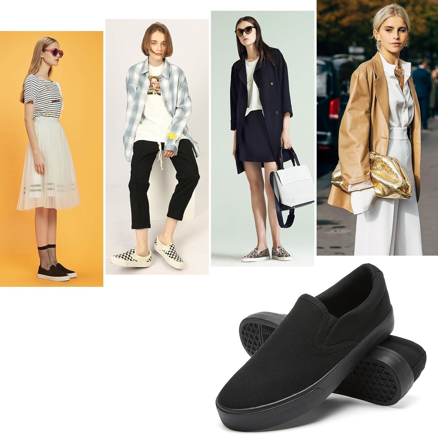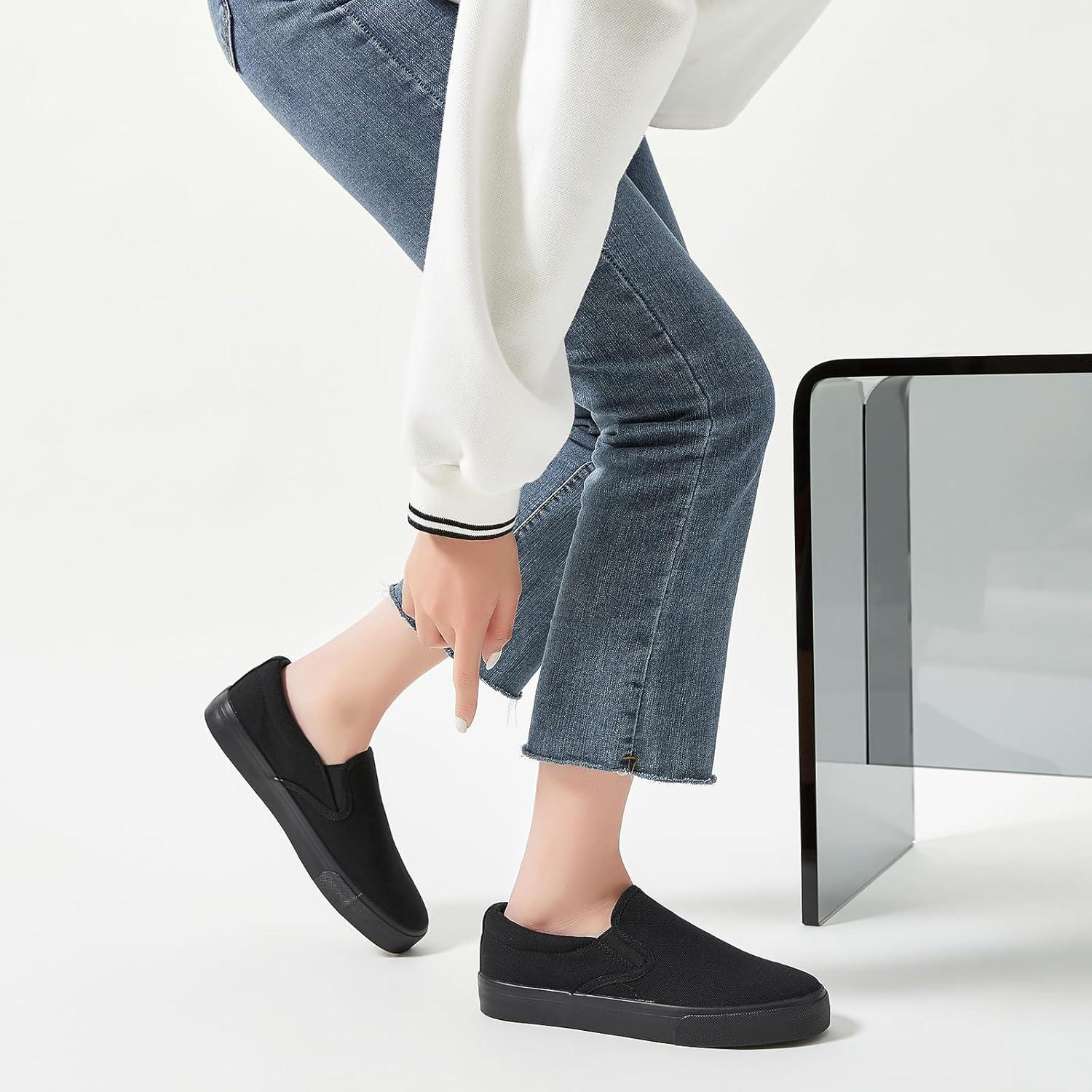 Women’s Slip on Shoes Canvas Sneakers Loafers Non Slip Shoes Low Top Casual Shoes(Full Black)